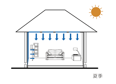 通過漫輻射的方式,柔和的對(duì)室內(nèi)進(jìn)行制冷或者供暖,如下示意圖: